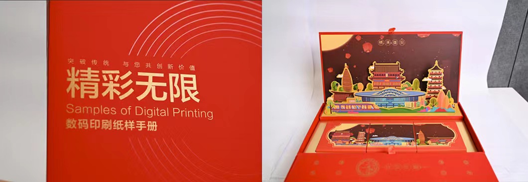 南京艺好印数字图文影像有限公司获奖作品“数码印刷纸样手册”(左)、天津柒壹捌广告有限公司获奖作品“特殊色样册”(右)